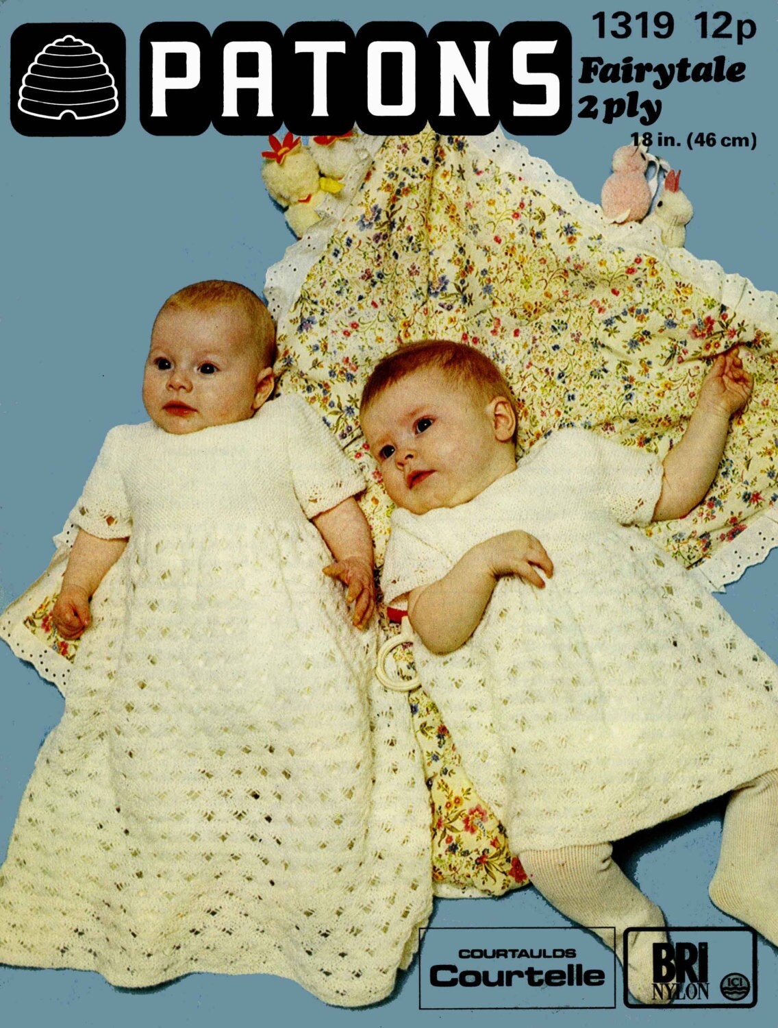 Baby Christening Gown and Dress, 18" Chest, 80s Knitting Pattern, Patons 1319