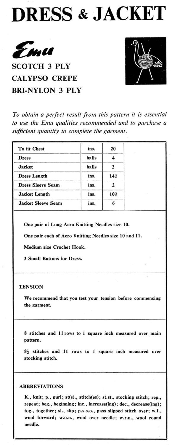 Baby Dress and Jacket, 3ply, 70s Knitting Pattern, Emu 8256